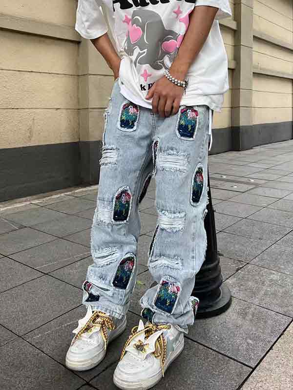 Lose Herrenjeans mit zerrissenem Stickerei-Patch