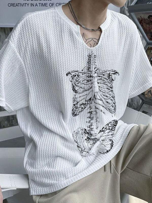 Kurzärmliges T-Shirt mit Totenkopf-Print am Hals für Herren