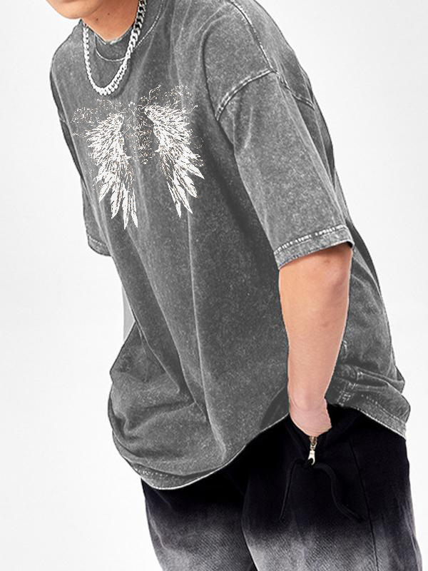 Oversize-Kurzarm-T-Shirt mit Flügel-Print für Herren