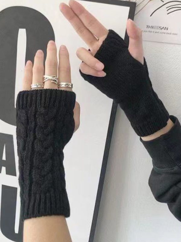 Daumenloch-Zopfmuster-Handwärmer-Handschuhe