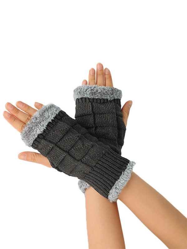 Fingerlose Strickhandschuhe mit dickem, warmem Fleecefutter