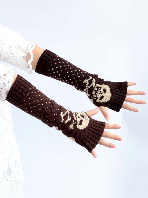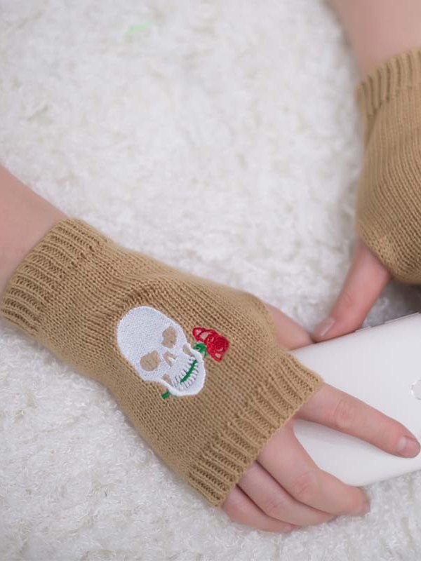 Fingerlose Handschuhe mit Schädelstickerei und Daumenloch