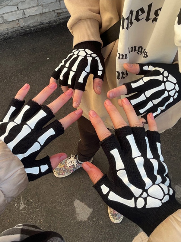 Halbfinger-Handschuhe mit leuchtendem Totenkopf-Print für Halloween