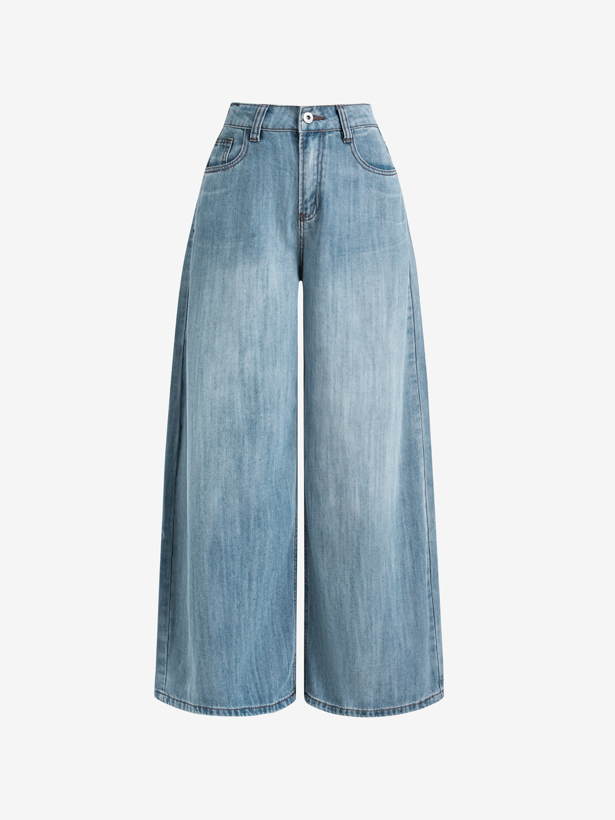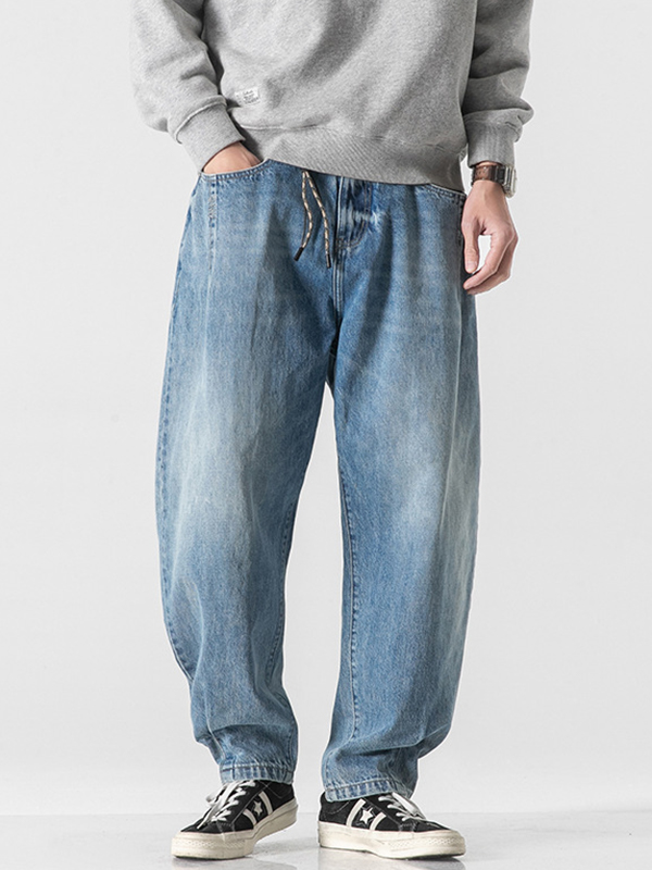 Japanische Retro-Jeans mit weitem Bein in Blau