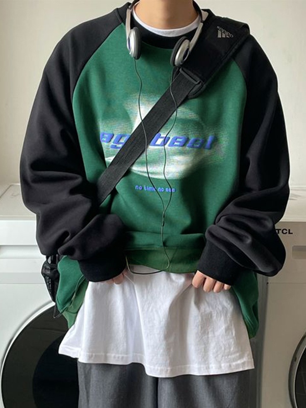 Herren-Raglan-Sweatshirt mit Aufdruck in Kontrastfarbe