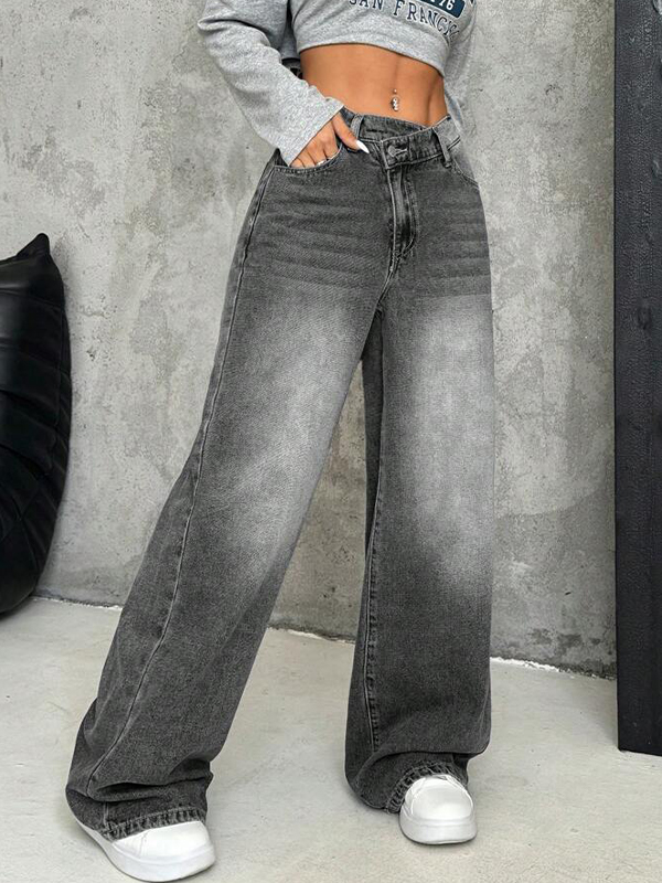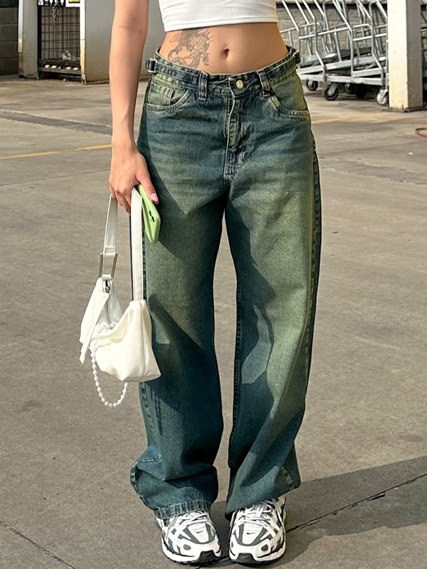 Lose Herrenjeans mit mehreren Taschen und buntem Aufdruck