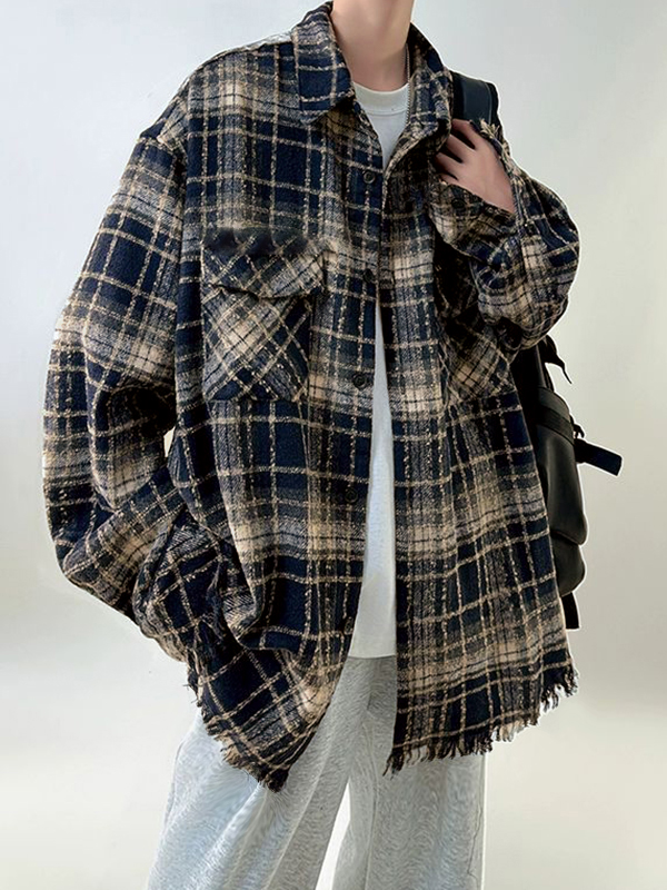 Herrenjacke im Vintage-Stil mit Karomuster und Quasten-Detail