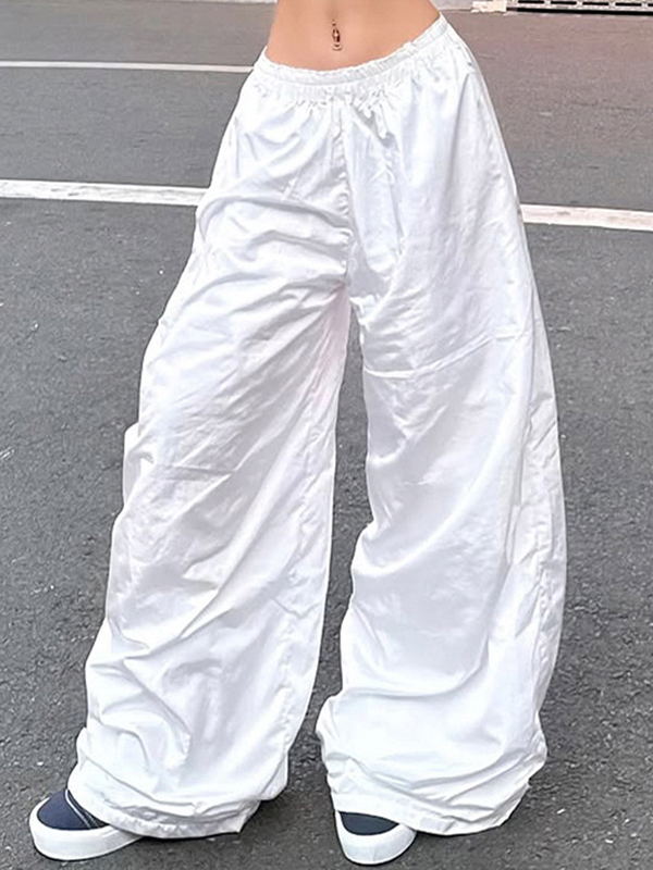 Einfarbige, lockere Hose mit weitem Bein