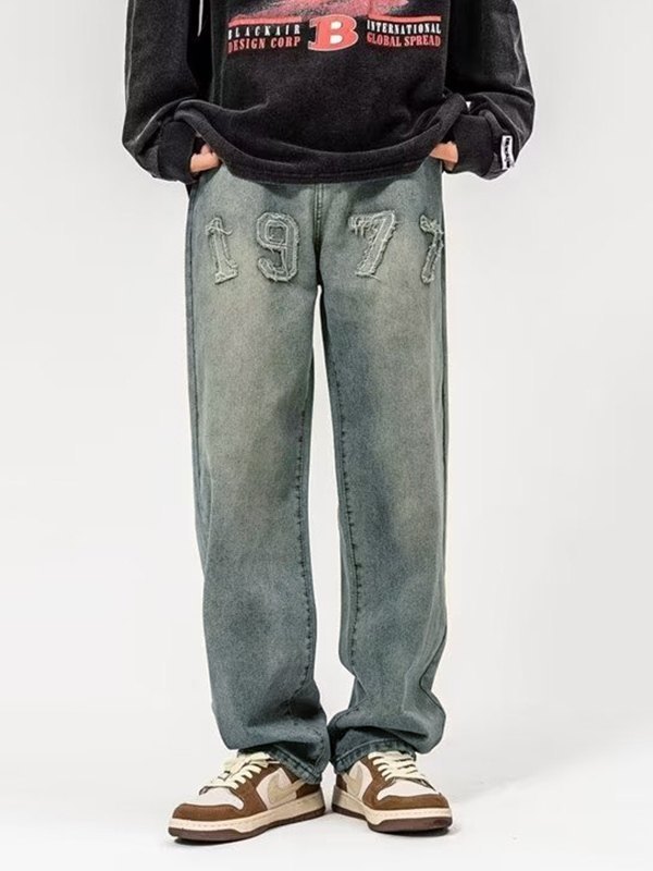 Verwaschene Herrenjeans mit Distressed-Applikation