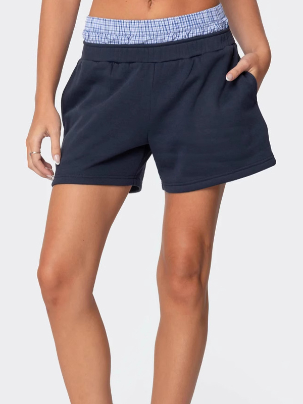 Sportliche Freizeitshorts mit Patchwork-Karo-Bund