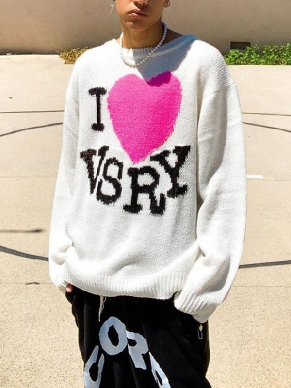 Herren-Strickpullover mit Rundhalsausschnitt und Jacquardmuster mit Buchstaben und Herzmuster
