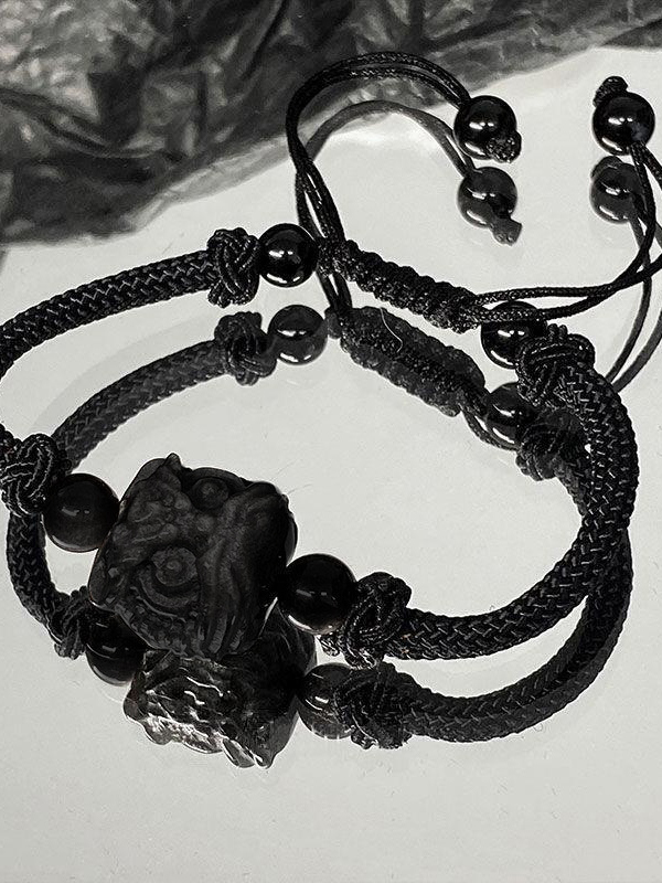 Geflochtenes Seilarmband mit schwarzem Löwenanhänger