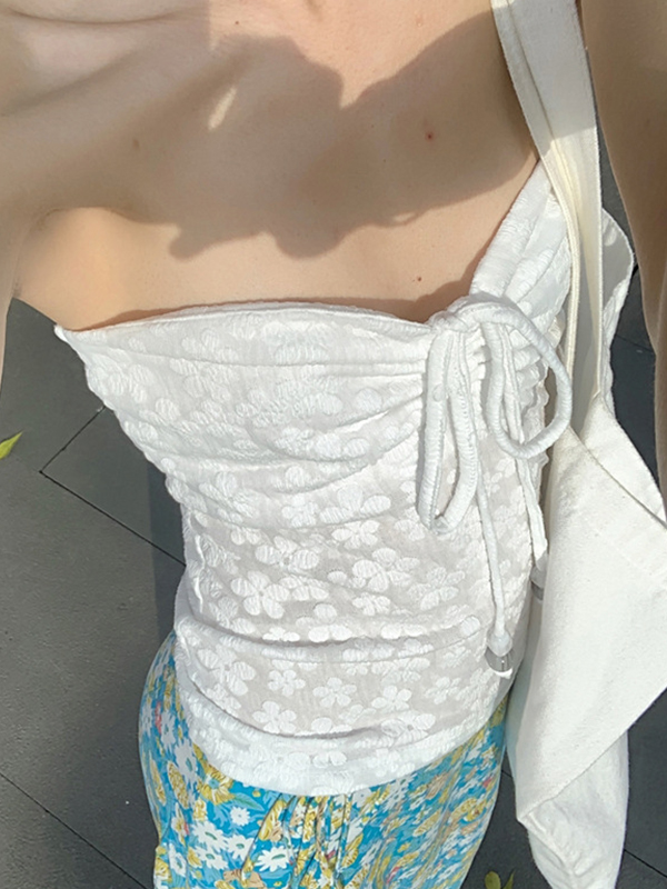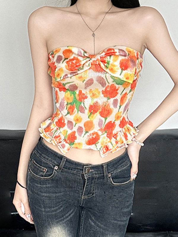 Trägerloses Tanktop mit Blumenmuster und seitlicher Schnürung