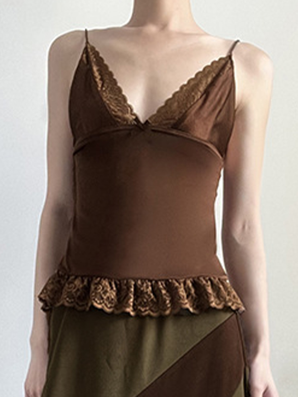 Schlankmachendes Camisole-Top mit V-Ausschnitt und Spitzenausschnitt