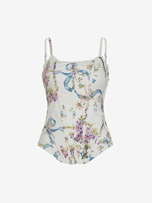 Camisole-Top mit Blumenmuster und Spitzenstickerei