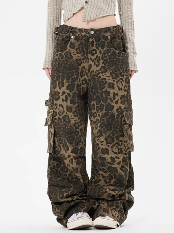Cargo-Jeans mit Taschen und Leopardenmuster
