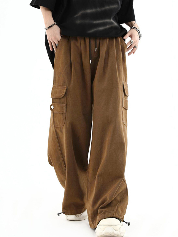 Herren Vintage Braune Cargohose mit großen Taschen und gebundenen Füßen