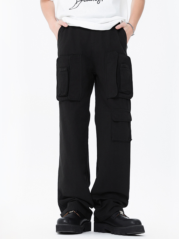 Lockere schwarze Cargohose mit mehreren Taschen für Herren