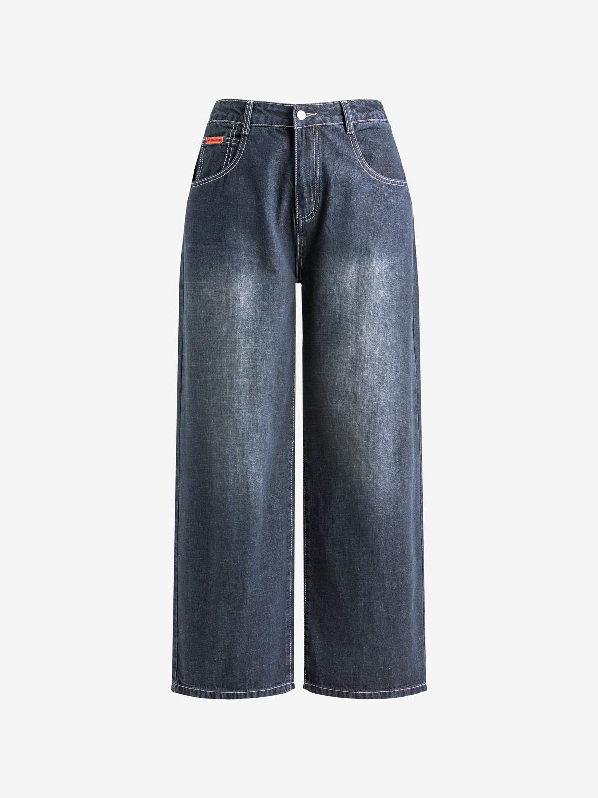 Gerade geschnittene Boyfriendjeans im Vintage-Stil in Blau