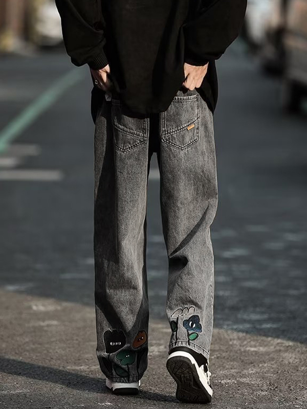 Herren-Jeans im Distressed-Look mit interessanter Blumenstickerei