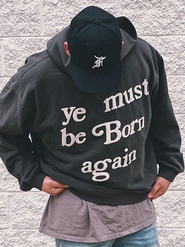 Übergroßer Kapuzenpullover für Herren mit Alphabet-Applikationen