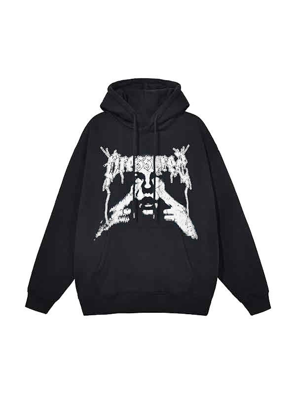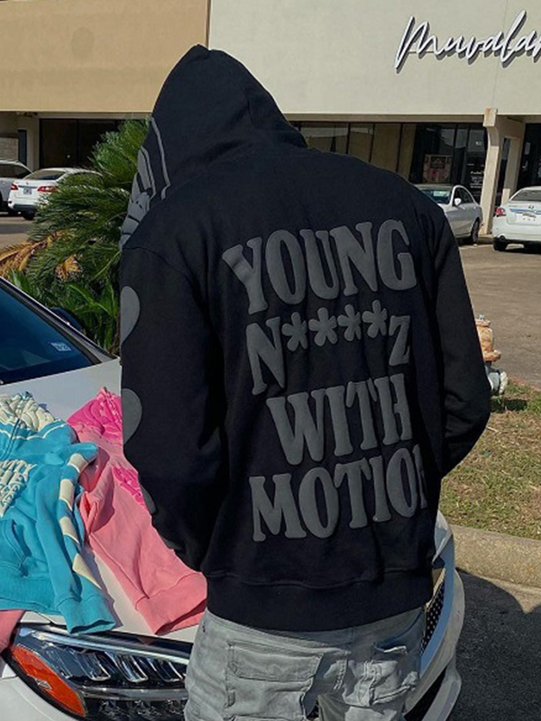 Dicker, übergroßer Kapuzenpullover mit Street-Print für Herren
