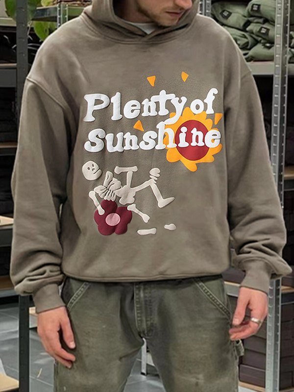 Übergroßer Kapuzenpullover mit Distressed Sun-Print für Herren