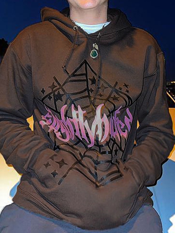 Übergroßer Kapuzenpullover mit Buchstaben-Stern-Print in Kontrastfarbe