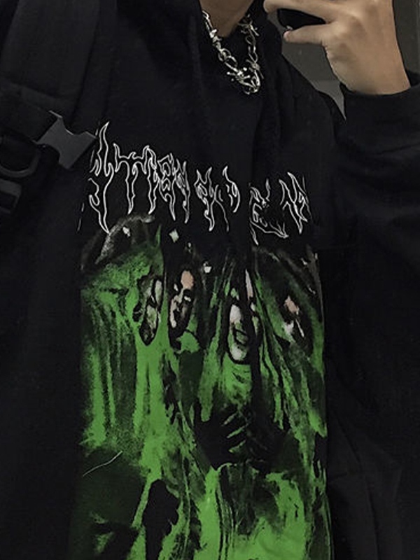 Übergroßer Kapuzenpullover mit Gothic-Schädelmuster für Herren