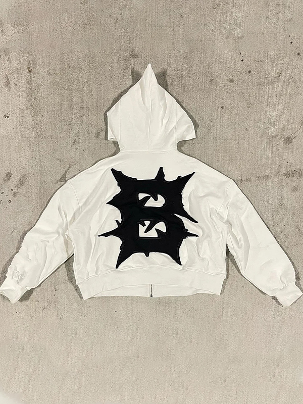 Übergroßer Kapuzenpullover mit durchgehendem Reißverschluss für Herren mit Spinnenmuster