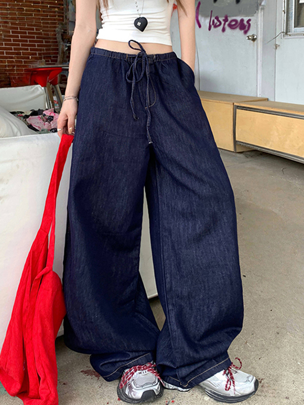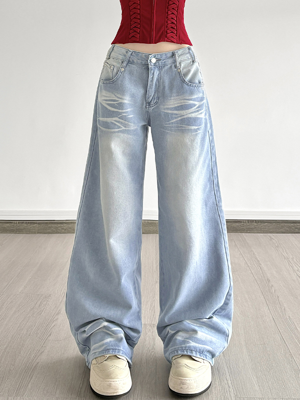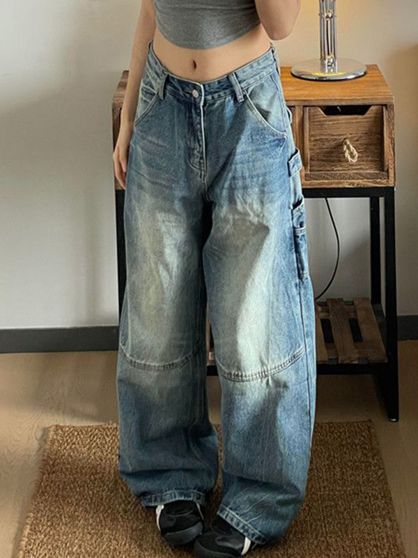 Japanische Retro-Jeans mit weitem Bein in Blau