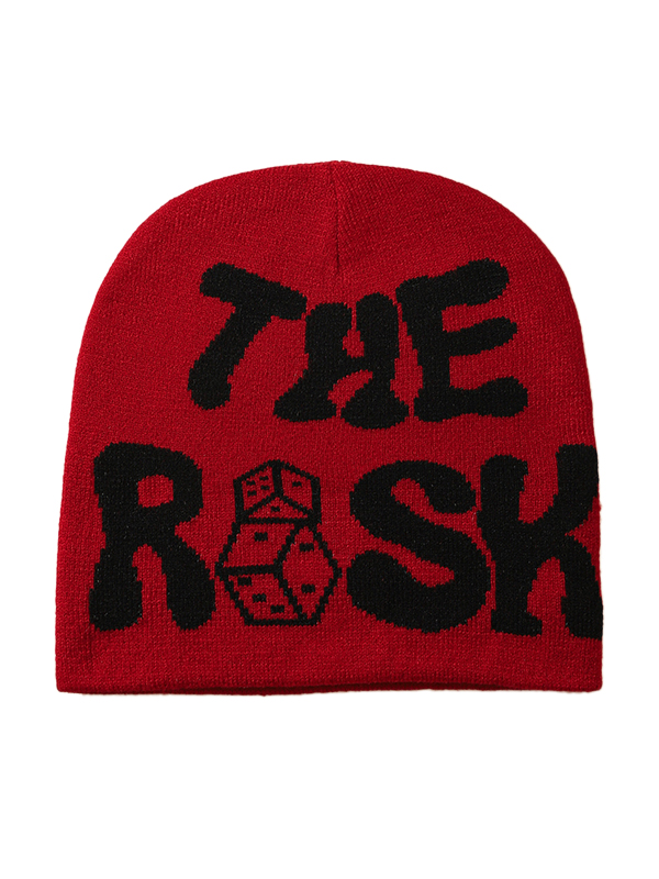 Kontrastfarbene Beanie-Mütze mit Buchstaben-Würfel-Print