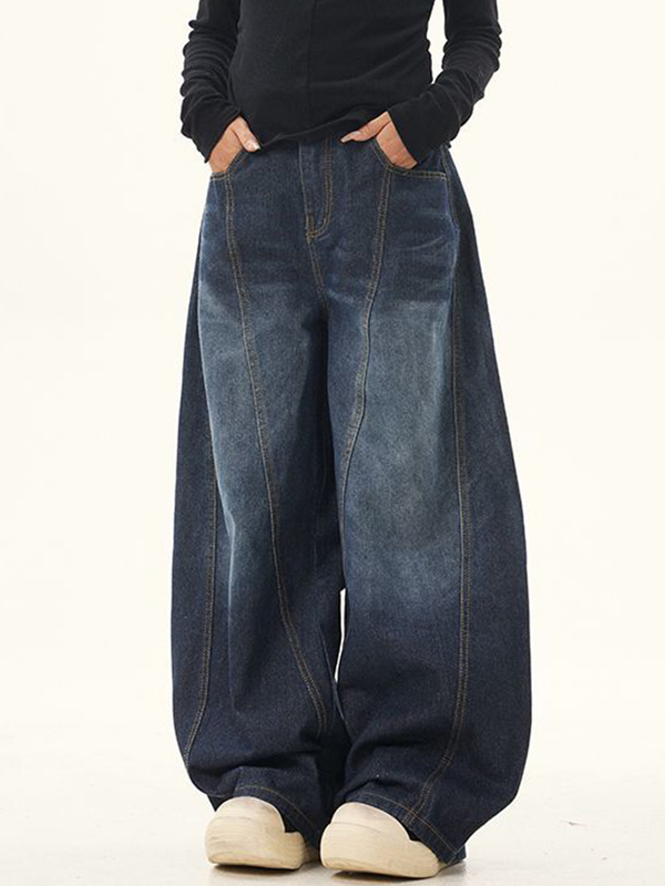 Japanische Retro-Jeans mit weitem Bein in Blau