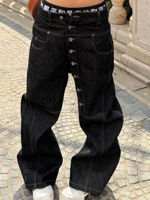 Stilvolle Boyfriendjeans mit langen Reihenknöpfen