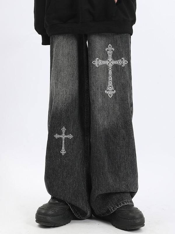 Lose Herrenjeans mit Skelettmuster und Nahtdetail
