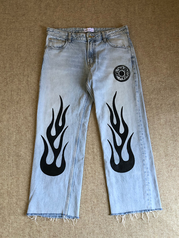 Schlagjeans mit Blumenmuster und Perlenstickerei