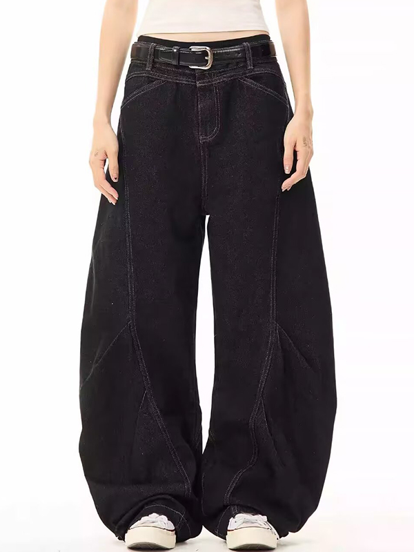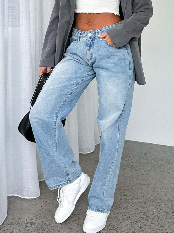 Einfache, lockere Jeans mit mittelhoher Taille und einfarbiger Passform