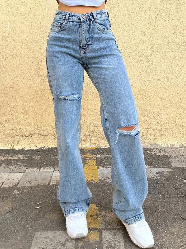 Gerade geschnittene, lockere Raglan-Jeans mit Rissen