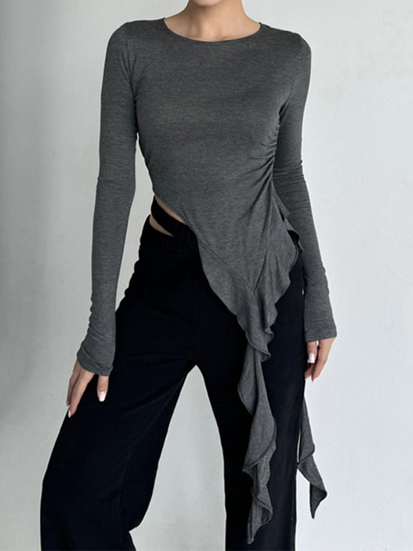 Einfarbiges, unregelmäßiges Langarm-T-Shirt