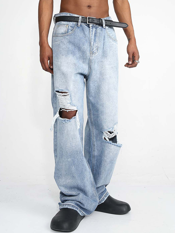 Zerrissene, lockere Jeans für Herren in Distressed-Waschung