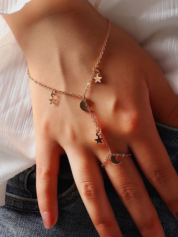 Stern-Mond-Fingerring-Ketten-Sklaven-Armband