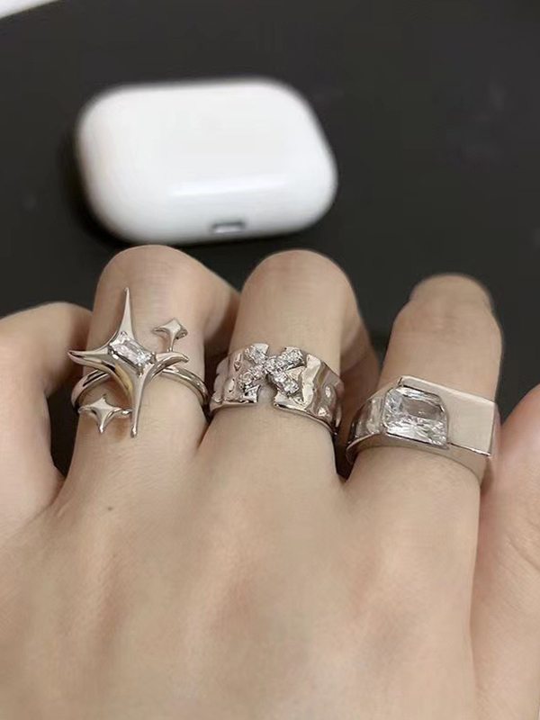 3-teiliges Manschettenring-Set mit glitzernden eingebetteten Diamanten