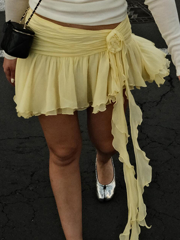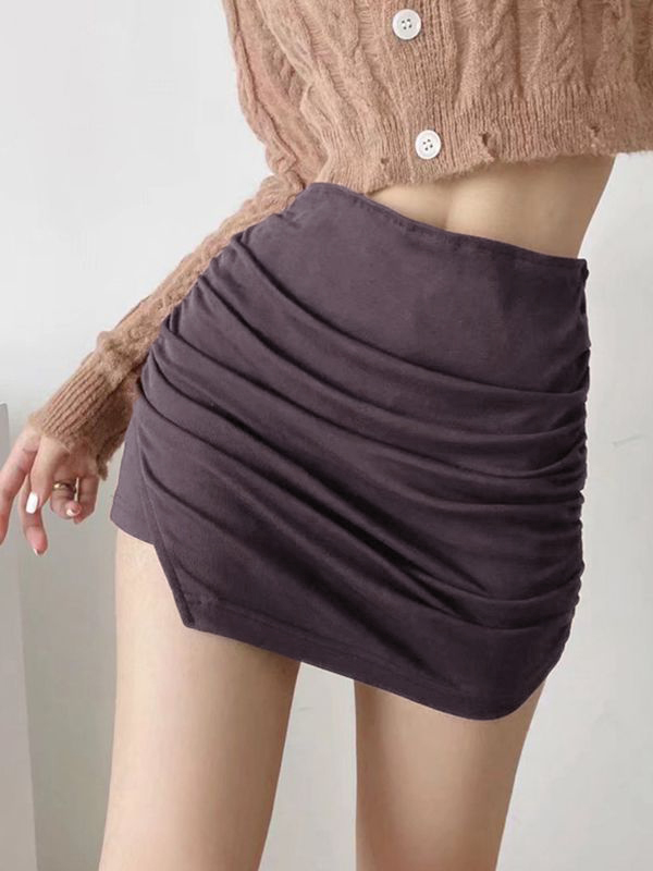 Gerüschter, geteilter, gefütterter Minirock