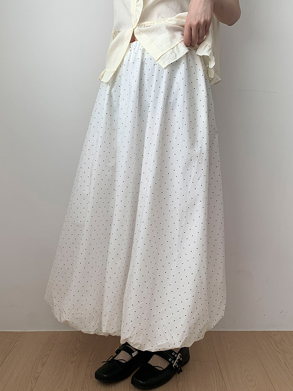 Süßes Mädchen im weißen gepunkteten Maxirock