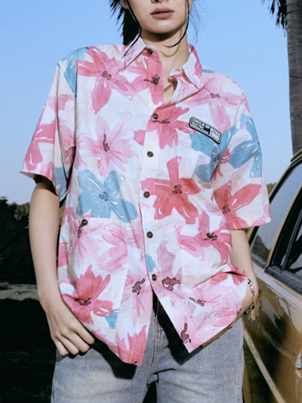 Rundum bedruckt mit Blumenmuster Frische Kurzarm