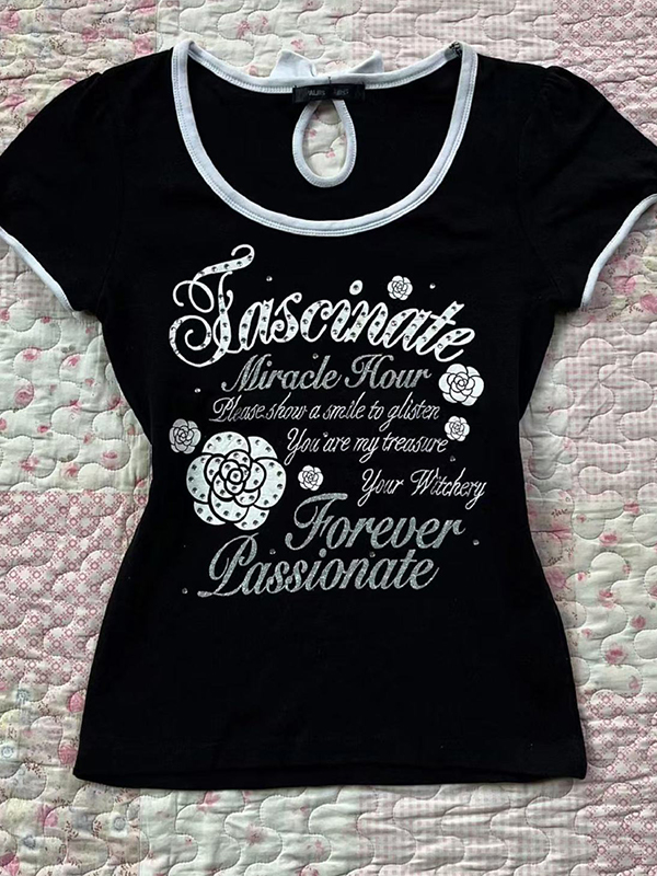 Kurzärmliges T-Shirt mit Perlen und Kordelzug