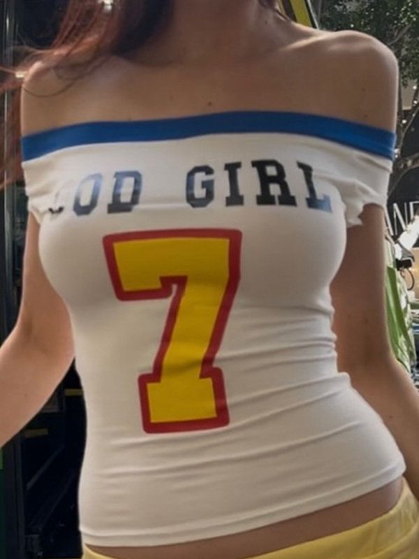 One-Shoulder-T-Shirt mit digitalem Druck und kurzen Ärmeln