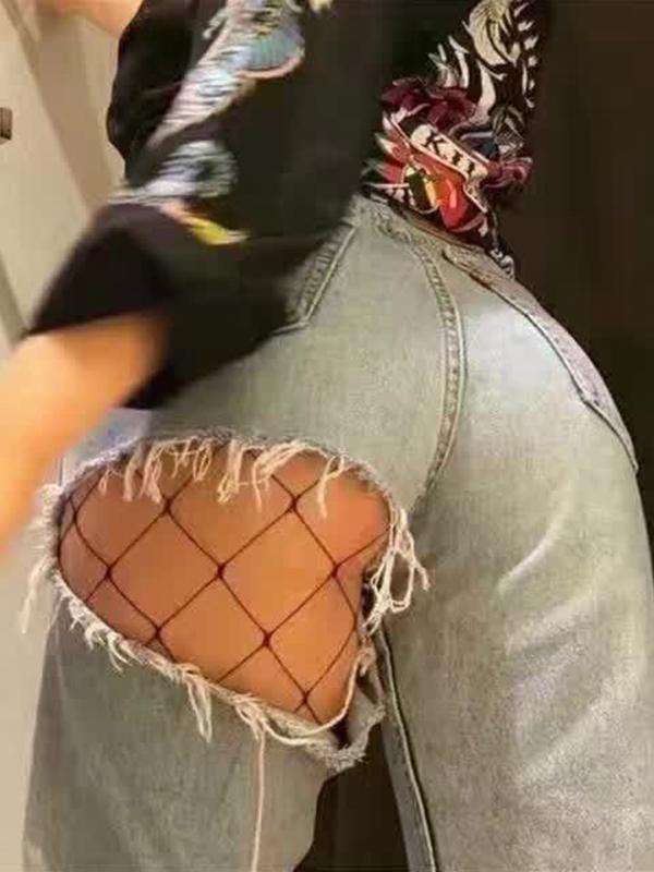 Einfache Netzstrumpfhose mit hoher Taille