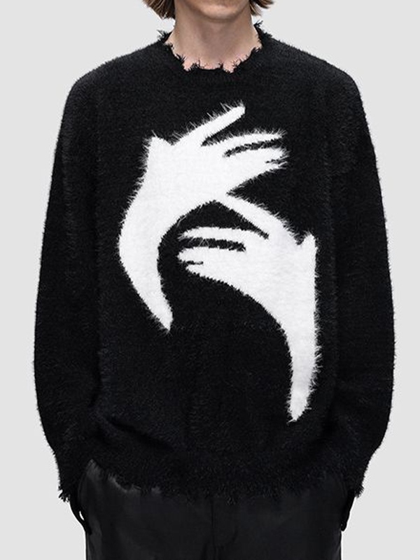 Rollkragen-Pullover mit Cartoon-Haifisch für Herren