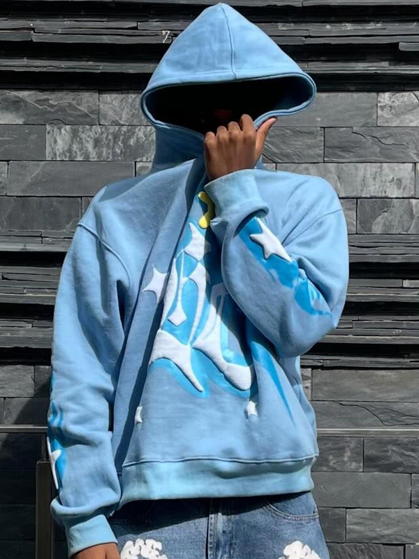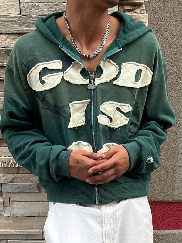 Übergroßer Kapuzenpullover für Herren mit Alphabet-Applikationen